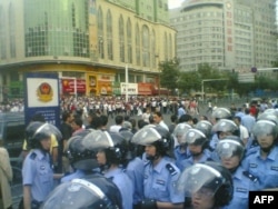 Полиция "тыныч максатлы протест чарасы" уздырырга теләгән кешеләрне тынычландыру өчен ут ача, уйгыр активистлары вакыйгада 200-дән артык кешенең һәлак булуын белдерә.