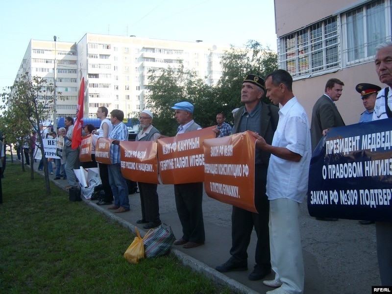 ТИҮ вәкилләре “309-нчы канунны үзгәртүне таләп итәбез”, “БДИ татар телендә булырга тиеш”, “309-нчы канун Русия конституциясен гади кәгазь ясый”, “309-нчы канун Русияне нацизмга илтә” кебек шигарьләр тотканнар иде.