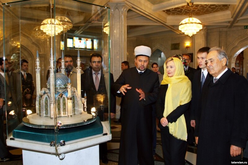 Һиллари Клинтон Кол Шәрифтәге атмосферага сокланды. Монда җылылык, тынычлык сизелә, диде. Халыкара тынычлыкның дин белән үрелеп баруын күрәбез ди. Миңтимер Шәймиев та бу мизгелләрдә динара мөнәсәбәтләрнең әйбәт булуын, дөнья көтәргә дә вакыт табабыз, рухи ихтыяҗларны канәгатьләндерү өчен дә мөмкинлекләр тудырылган, диде. Бу сүзләр Һиллари ханымга ошады, моның шулай булуын үзем килеп күрәсем килгән иде, сезгә сокланам дип әйтте. Без дә аның килүенә бик куануыбызны белдердек. Ике ил арасындагы мөнәсәбәтләр икътисади хезмәттәшлек дини һәм рухи аңлашу белән бергә үрелеп барсын иде дигән теләкне җиткердем”, диде Рамил хәзрәт.