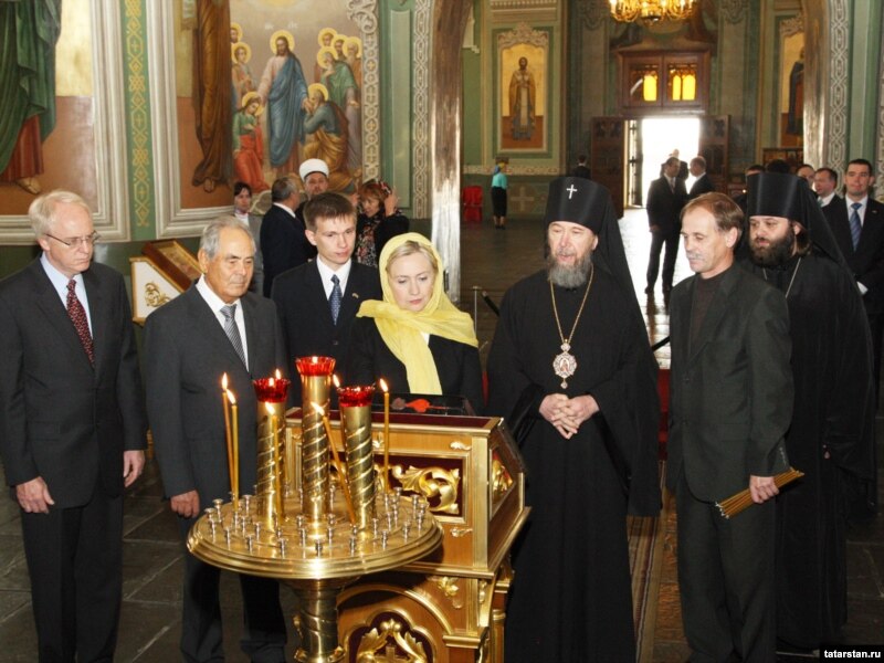 Һиллари Клинтон берничә гасыр элек төзелгән Благовещение чиркәвенә белән танышып, республика архиепископы Анастасий белән сөйләште. Дәүләт сәркатибенең программасына Казан университетында диннәр һәм милләтләр арасындагы мөнәсәбәт турында түгәрәк өстәл сөйләшүе кергән иде. Бу сөйләшүдә катнашучы экспертларны һәм җәмәгатьчелек вәкилләрен тыңлау, университет музее белән танышу шактый вакыт алды. Университет урнашкан бинага сайлап кына, бары тик документлар тикшереп үткәрделәр.
