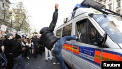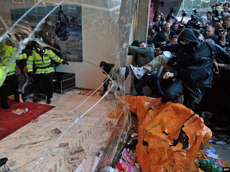 Ике атна элек 50 меңнән артык укучы катнашлыгында башланган урам җыены ахырында "каеш кысу" сәясәтен игълан иткән консервативлар партиясе бинасы алдында җыелган бер төркем укучы полицияне узып бинага кергән иде.
