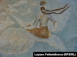 “Нәҗип Җиһанов җырында бер япон кызы авыру була. Табиб аны өметләндереп, мең торна ясарга куша, һәм бу кыз соңгысын ясаганда үлеп китә. Мин ясаган рәсем дә шул турыда сөйли”, диде Сәйдәш.