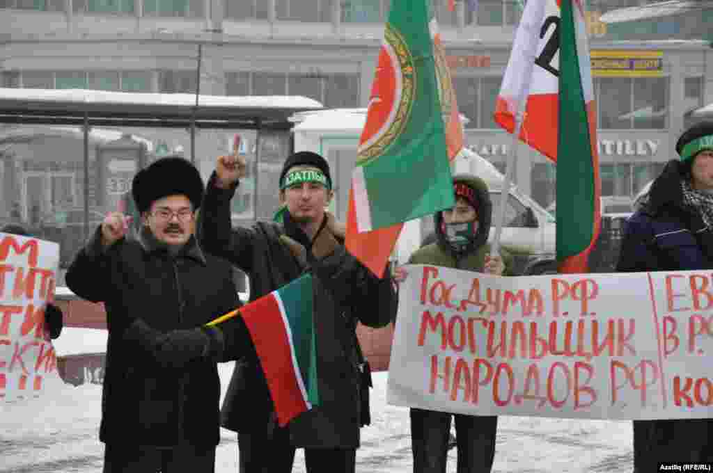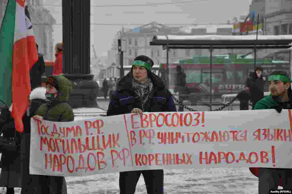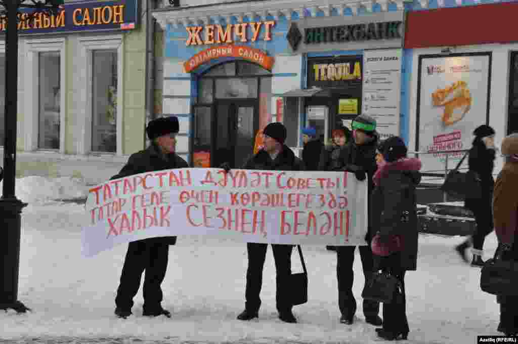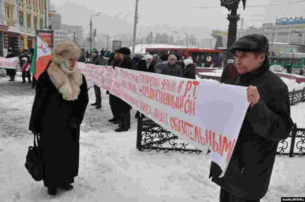 1 декабрь көнне Казанда милли телләрне мәҗбүри укытуны бетерүгә каршы урам чарасы үтте. Казанның Бауман урамында узган пикетта милли хәрәкәтнең утызга якын активисты катнашты. [Илдар Габидуллин фотолары]