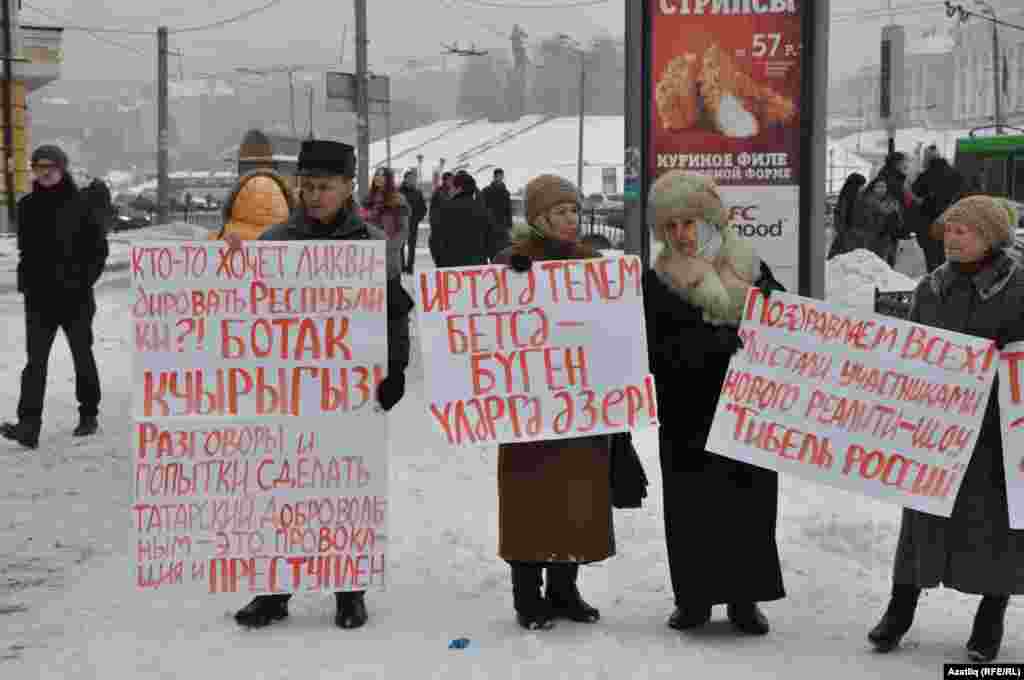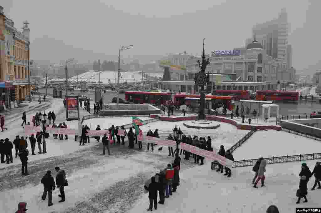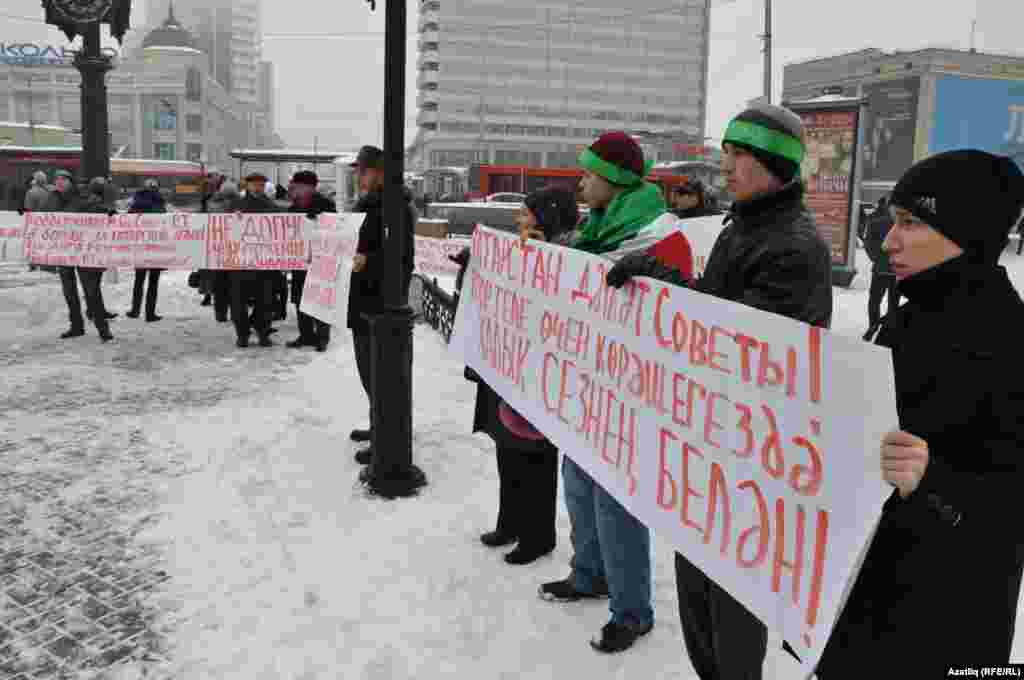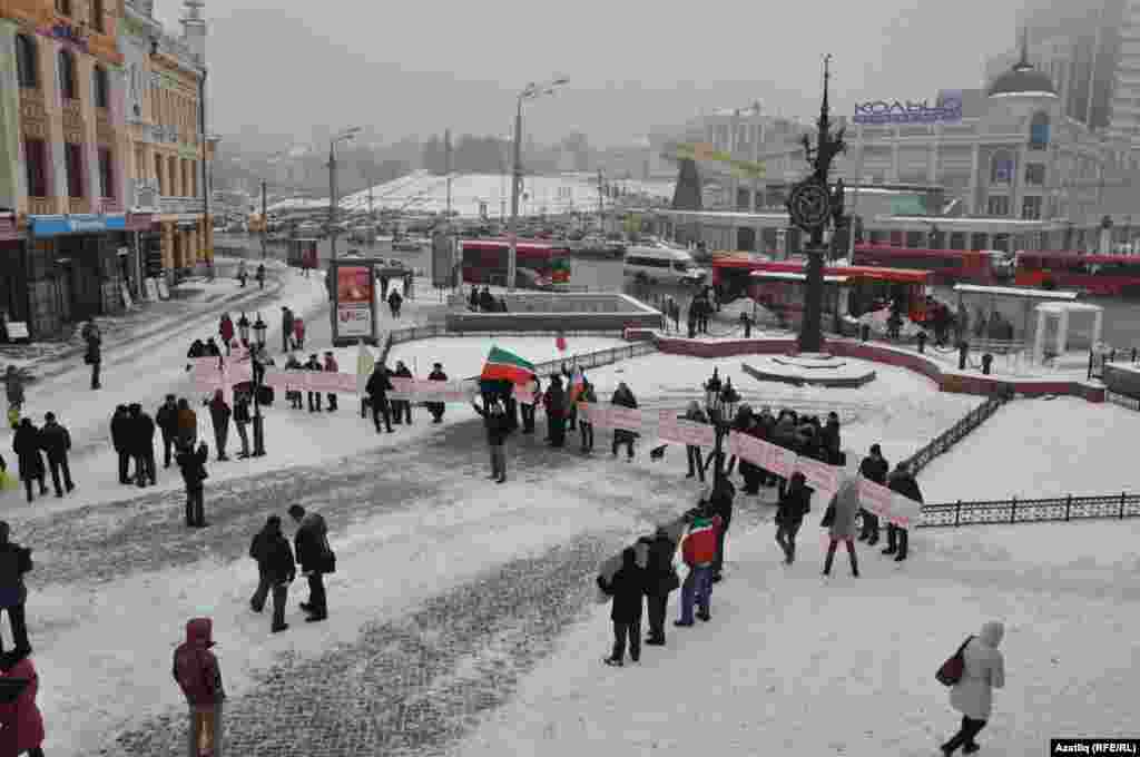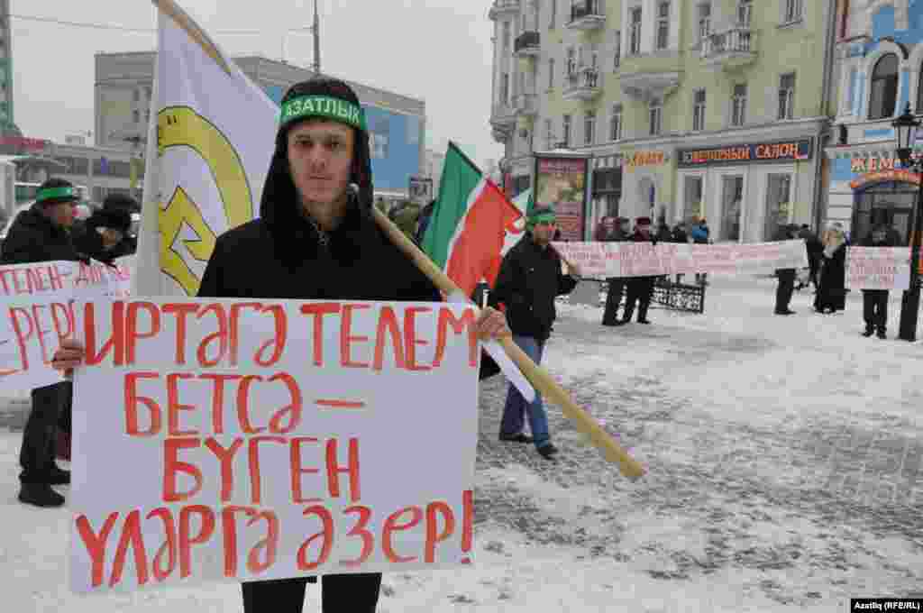 1 декабрь көнне Казанда милли телләрне мәҗбүри укытуны бетерүгә каршы урам чарасы үтте. Казанның Бауман урамында узган пикетта милли хәрәкәтнең утызга якын активисты катнашты. [Илдар Габидуллин фотолары]