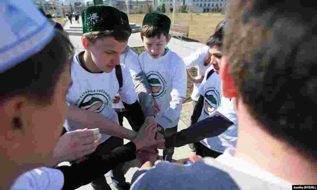 Tatarstan -- Scene of "Tatar dozor" (Tatar watch) game in Kazan, 21Apr2014