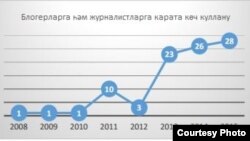 Хокук яклаучылар мәгълүматларына күрә, 2015 елда Татарстанда интернет кулланучыларга басым сизелерлек арткан. Интернетта төрледән-төрле тыюлар, эзәрлекләүләр, хөр фикер белдерүчеләргә басымнар 143тән 569га җиткән.