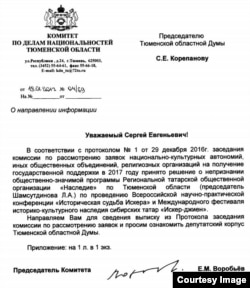 "Ул комиссия утырышында янәсе 10 кеше каршы булган. Нигә безнең "Искер-җыен"ның хәле киң җәмәгатьчелеккә чыгарып тикшерелмәгән? Бу комиссиянең безнең "Искер-җыен"га бәя бирергә хакы юк. Комиссия акча бирәбез, йә бирмибез дип кенә белдерә ала, әмма безнең хакта ниндидер фикер тудыру өчен Төмән думасына бәяләмә төшерергә хакы юк.
