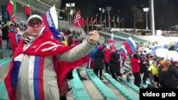 Олимпия уеннары барган Пхенчханда төшерелгән видеоязмаларның берсендә берничә Татарстан байрагы күренеп калды. Алар белән янәшә Русия әләмен дә күреп була, анысына "Зеленодольск" дип язылган. Видео чаңгы ярышлары вакытында төшереп алынган.