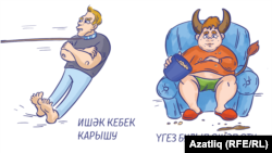 На русский язык данный фразеологизм дословно переводится как “выжимать козлиное масло”. Употребляется в случае, когда в поте лица и с большими физическими усилиями выполняется какая-либо нелегкая работа “кәҗә маен чыгарып эшләү”. Иногда этот фразеологизм применяется и как угроза по отношению к бездельникам и тунеядцам, чтобы заставить их работать.