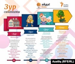 Дуслар! Сегодня мы с вами рассмотрим синонимы и антонимы к слову "зур", которые помогут нам с вами узнать больше слов в татарском языке при описании размера и величины предметов.