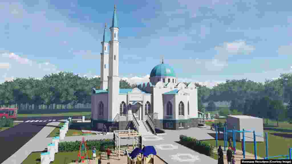 Казанның Авиатөзелеш районында Годовиков һәм Симонов урамнары чатында төзеләсе "Рәхмәтулла" мәчете проекты. Искәндәр Насыйров сурәтләре.