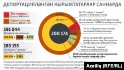 18 майда башланып 20 майда тәмамланган депортация барышында 200 меңләп кырымтатар ватанынннан Үзәк Азиягә, Свердлау, Пермь, Тула, Кострома өлкәләренә, Мари Иленә сөрелә.