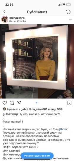 Гөлназ Шәрипҗанова үз Инстаграмында болай дип яза: “Дәшми торудан мәгънә юкмы?! Бу - рекет! Хосусый каналларны аңлап була, әмма “Татарстан-Яңа гасыр”! Ул дәүләт хисабына эшләүче канал. Ротация бәясенең артуы белән күндек инде, әле анысы да ни өчен артты? Нефть бареле үстеме? Доллармы? Әллә көннең сәгате кимедеме? Әйе, без күп, барыбызны да күрсәтеп бетереп булмый. Яңа елда төнге 12гә кадәр 35 мең сум түләүчеләрне, ә аннан соң 25 мең сум түләгәннәрне күрсәтү җиңелрәк бит. Үзебез шулай өйрәттек, үзебез гаепле. Безне карасыннар һәм тыңласыннар өчен акча илтәбез. Киресенчә булса, болай эшләгәнче уйларлар иде...”