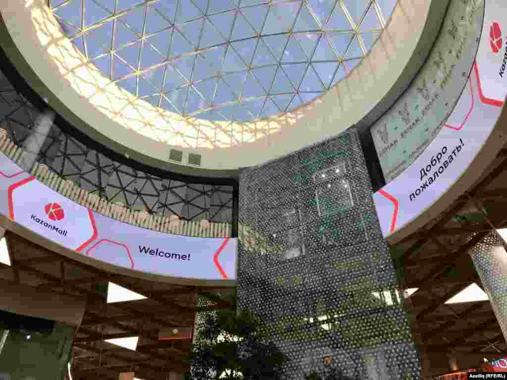 Казанның Павлюхин урамында шәһәрдәге иң зур сәүдә һәм күңел ачу үзәге төзелде. Kazan mall дип аталга үзәктә Азатлык хәбәрчесе "Рәхим итегез!", "Бәдрәф", "Сезне көтеп калабыз!"дан башка бер татар язуы да күрмәде. Инглиз телендә дә язулар шактый, ә менә Татарстандагы ике дәүләт теленең берсе булган татар теле биредә кулланылмый.