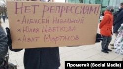 Чит илдәге Русия ватандашлары пикетка Русиядә репрессияләрне туктатуны, сәяси тоткыннарны азат итүне таләп иткән шигарләр белән чыкты.