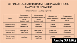 Что касается неопределенной формы, то тут дела обстоят следующим образом: используется отрицательное окончание -мас/мәс вместо окончания будущего времени.