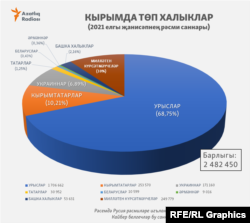 2021 елда Русиядә узган халык санын алу нәтиҗәләре турында сөйләүне дәвам итәбез. Җанисәп Русия тарафыннан аннексияләнгән Кырымда да узды. Бу оккупация шартларында инде икенче тапкыр халык санын алу. Беренечесе 2014 елда оештырылган иде. Ике җанисәп арасында кырымтатарлар 21 мең кешегә арткан. Ә 2001 елда Украина чорында узган җанисәп белән чагыштырганда, аларның саны 8 меңгә генә күбәйгән. Белгечләр бу саннарны ялган дип саный. Аларның исәбенә караганда, кырымтатарлар кимендә 50 мең кешегә, хәтта ике тапкырга киметелеп күрсәтелүе ихтимал. Азатлык җанисәп нәтиҗәләрен өйрәнде һәм белгечләр белән сөйләште.