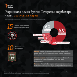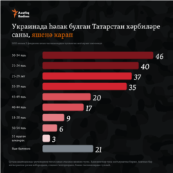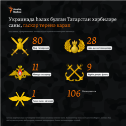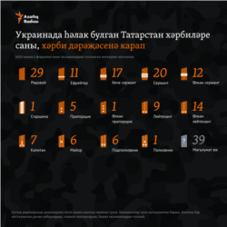 2023 елның 2 февраленә ачык чыганаклардан тупланган мәгълүмат нигезендә. Сугыш шартларында үлүчеләрнең төгәл санын ачыклау мөмкин түгел. Хакимиятләр тулы мәгълүматны бирми. Азатлык бар мәгълүматны рәсми хәбәрләрдән, социаль челтәрләрдән, башка чыганаклардан туплый.