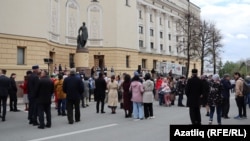 Кичке дүрттә Камал театры каршындагы мәйданда "Мин татарча сөйләшәм" акциясе башланды. Ул быел 18нче тапкыр уздырылды. Оештырыла башлаган елларында чара Бауман урамында уза иде. Хәзер ул татар тарихына "кайтып килә" – Иске бистәгә төшеп җитә язды. Элек бу чараның коймалары да юк иде, хәзер тимер коймалар эченә тикшереп кертәләр, шунда гына бәйрәм итәсе. Койма периметры буенча тезелгән полиция хезмәткәрләре гына аз, Камал театры янәшәсендә бер машина ОМОН хезмәткәрләре кизү торды. Бер чарада никадәр символ.