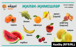 Если вы хотите больше попрактиковать эти названия на татарском языке, то добро пожаловать на наш урок из курса "Татарских для начинающих", где вы найдёте много фраз и предложений с фруктами и ягодами.