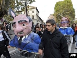 Ләкин Берлускони биргән вәгъдәләр итальян халкын канәгатьләндерми. Башкала Римдә һәркөн диярлек протестлар уза. Барсы да бер генә шәхескә каршы - Берлускони!