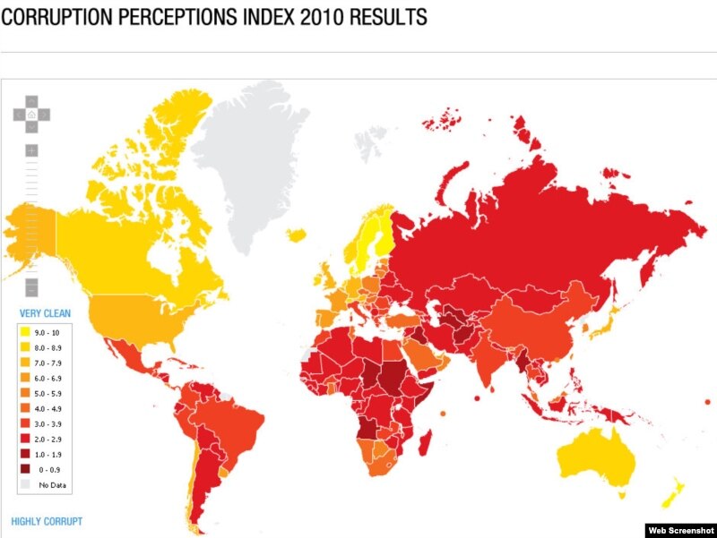 Дөньяда коррупция торышын өйрәнүче Transparency International оешмасының соңгы хисабы дөнья буйлап ришвәтчелек очракларының артуын күрсәтә.