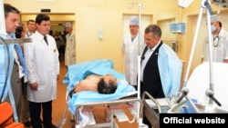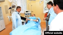 Татарстан президенты Рөстәм Миңнеханов һөҗүмдә исән калган мөфти Илдус Фәиз янында булды.